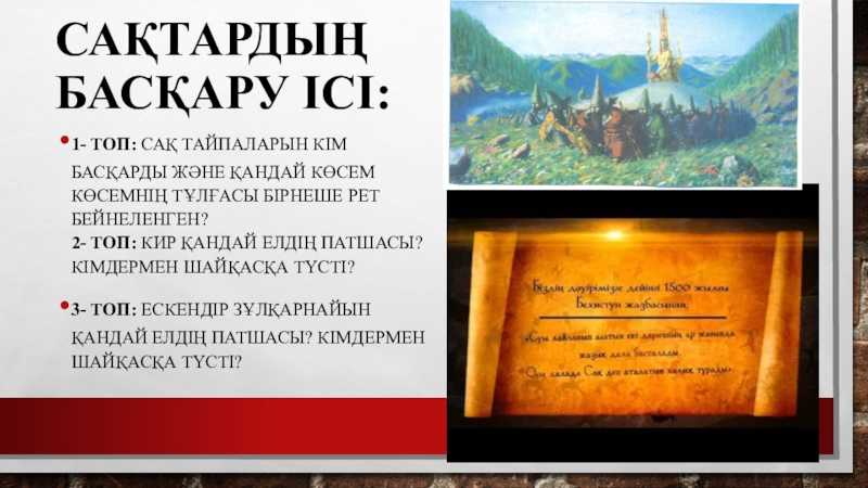 1- топ: Сақ тайпаларын кім басқарды және қандай көсем