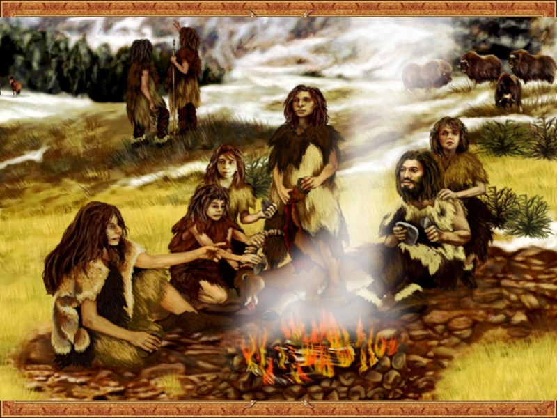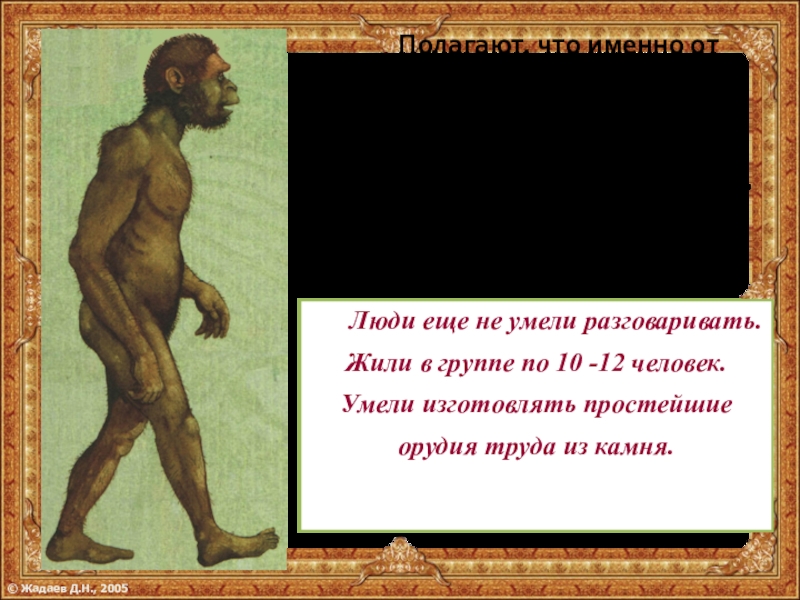 Люди еще не умели разговаривать. Жили в группе по 10 -12 человек.