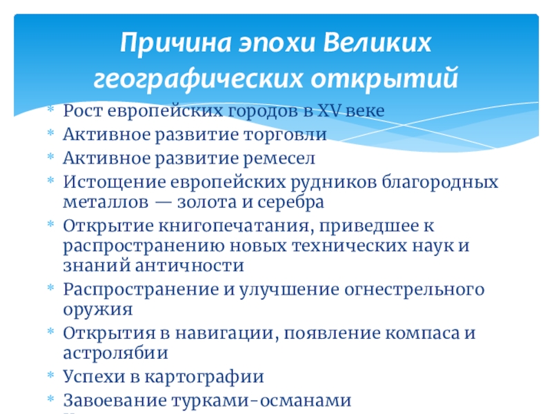 Причина эпохи Великих географических открытий