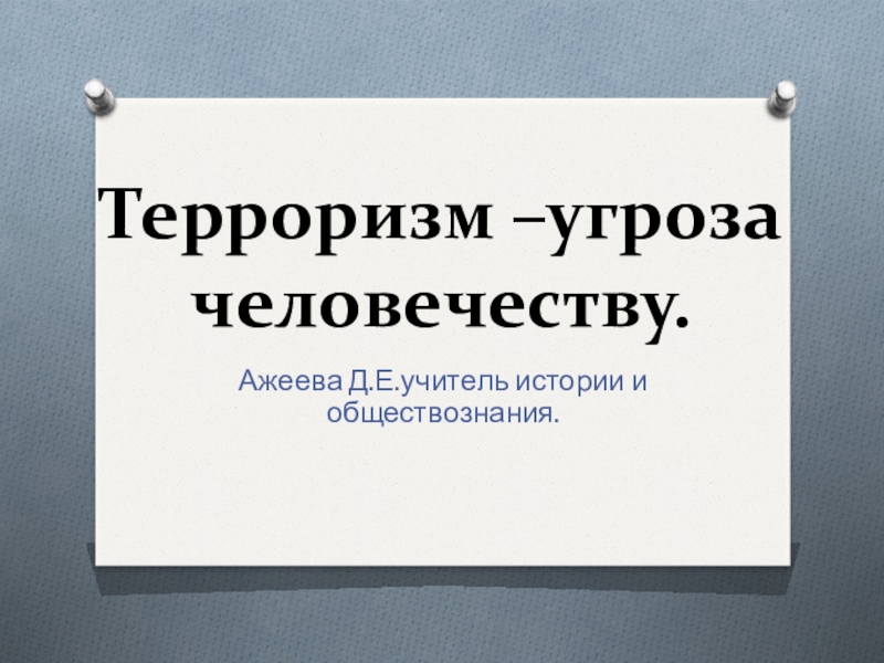 Терроризм –угроза человечеству.Ажеева Д.Е.учитель истории и обществознания.