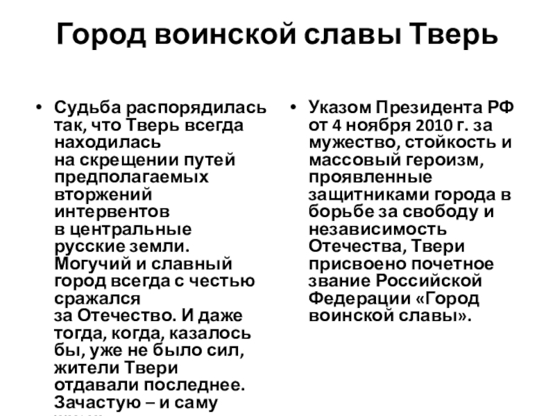 Слайд 20Город воинской славы Тверь