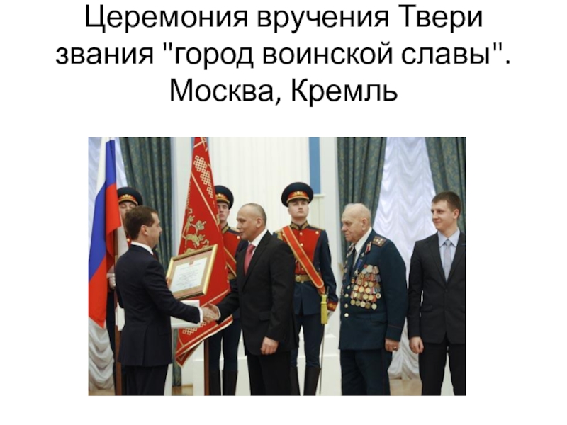 Слайд 4Церемония вручения Твери звания "город воинской славы". Москва, Кремль