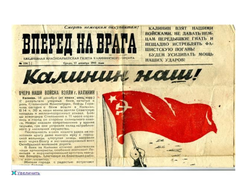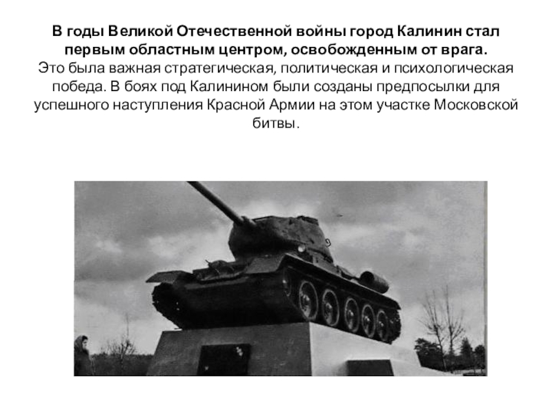 Слайд 13В годы Великой Отечественной войны город Калинин стал первым областным центром,