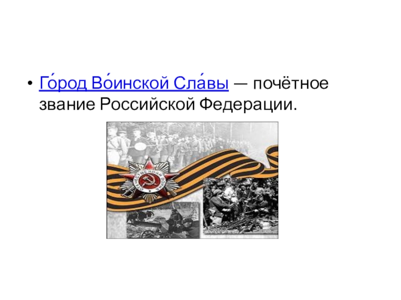 Слайд 3Го́род Во́инской Сла́вы — почётное звание Российской Федерации.