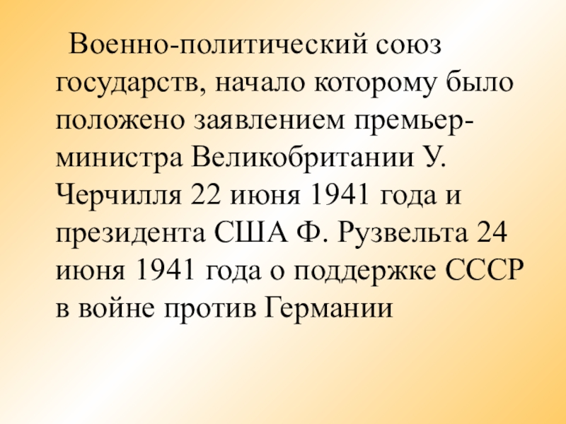 Великобритании У. Черчилля 22 июня 1941 года и президента США Ф. Рузвельта 24 июня 1941 года о поддержке СССР в войне против Германии
