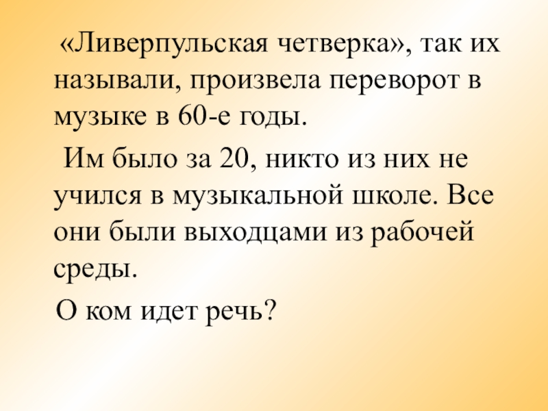 «Ливерпульская четверка», так их называли, произвела переворот в музыке