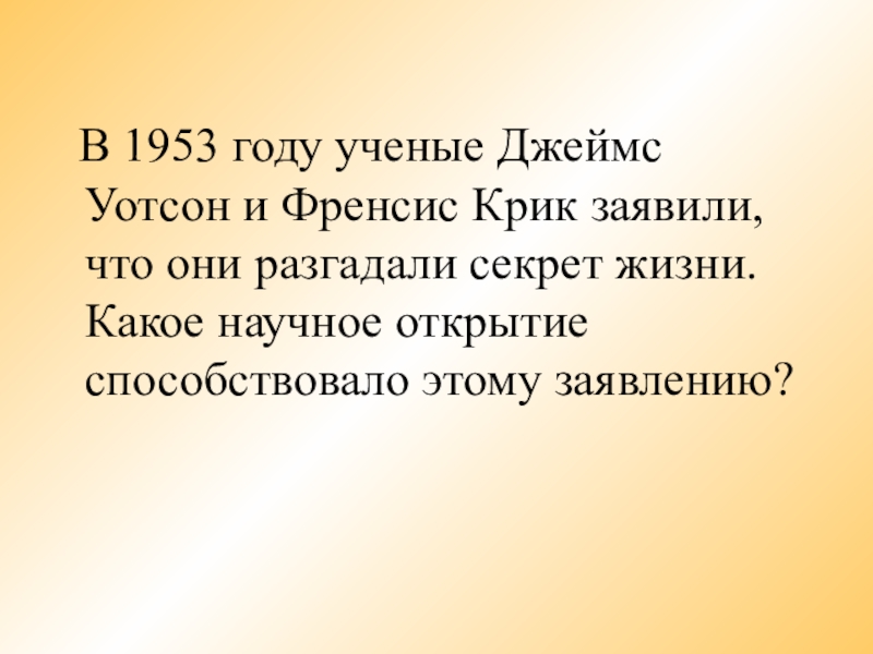 Френсис Крик заявили, что они разгадали секрет жизни. Какое научное открытие способствовало этому заявлению?