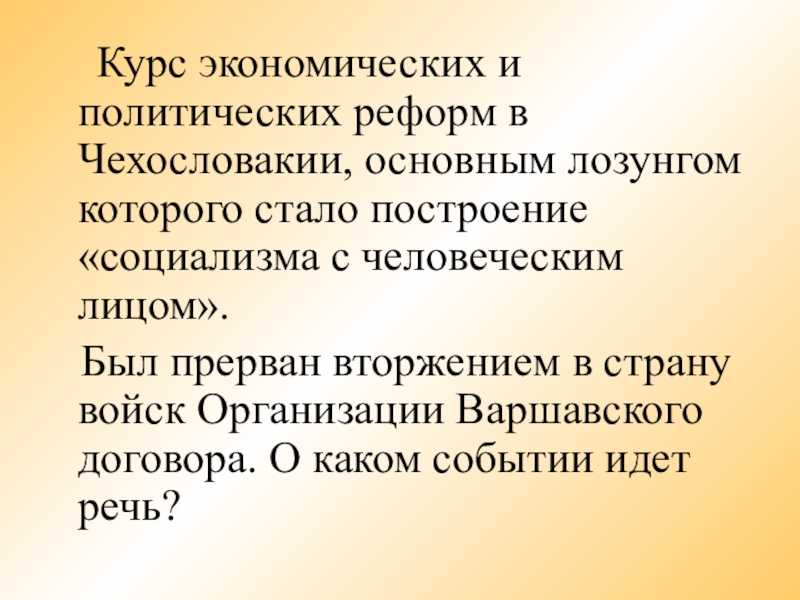 Курс экономических и политических реформ в Чехословакии, основным