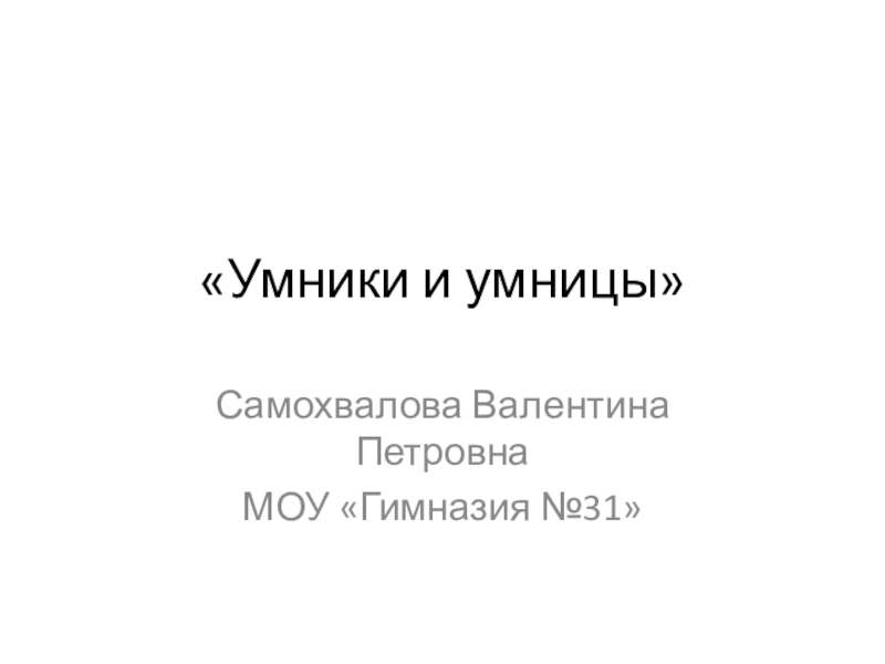 «Умники и умницы»Самохвалова Валентина ПетровнаМОУ «Гимназия №31»