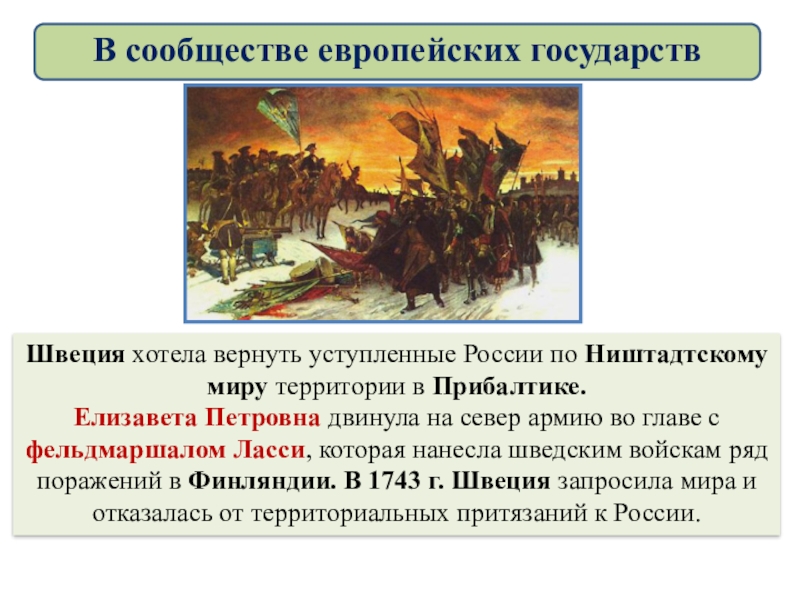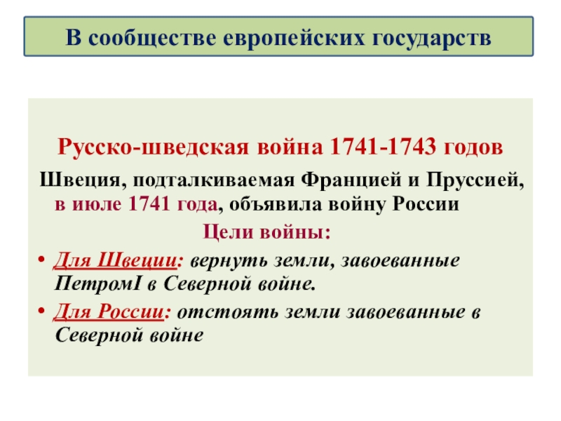 Австрия, Россия, Франция, Швеция, Саксония. В ходе войны присоединилась Испания.
