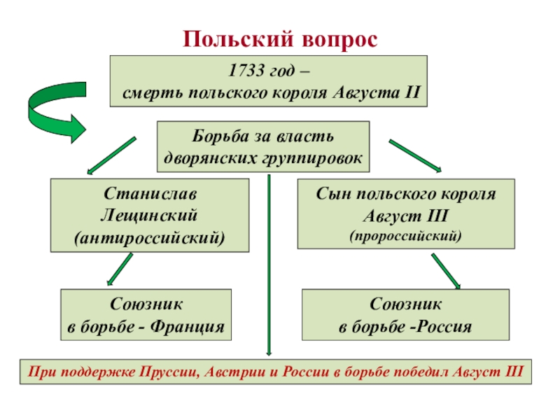 При поддержке Пруссии, Австрии и России в борьбе победил Август III