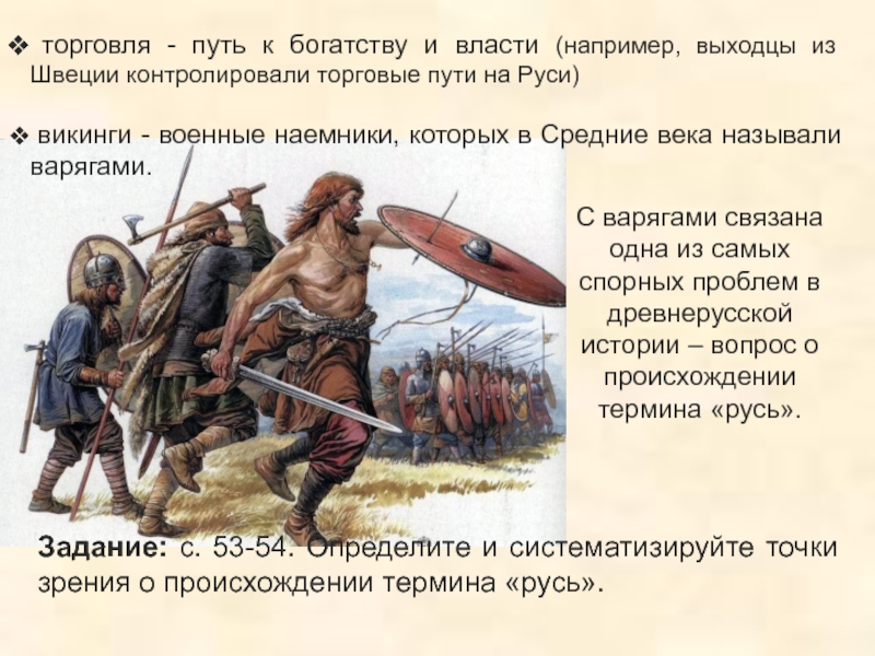 Задание: с. 53-54. Определите и систематизируйте точки зрения о происхождении термина «русь».