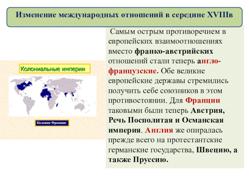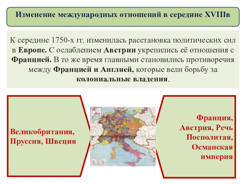 Изменение международных отношений в середине XVIIIв