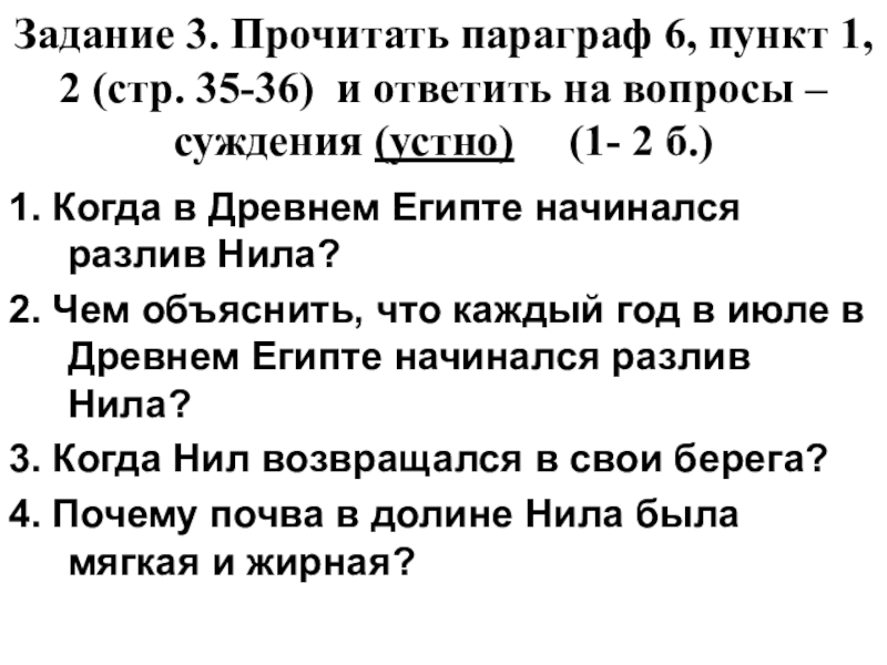2. Чем объяснить, что каждый год в июле в Древнем Египте начинался разлив Нила?