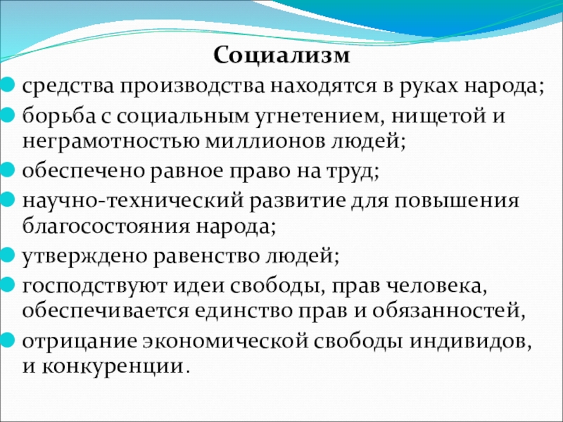 господствуют идеи свободы, прав человека, обеспечивается единство прав и обязанностей,