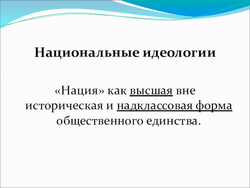 «Нация» как высшая вне историческая и надклассовая форма общественного единства.