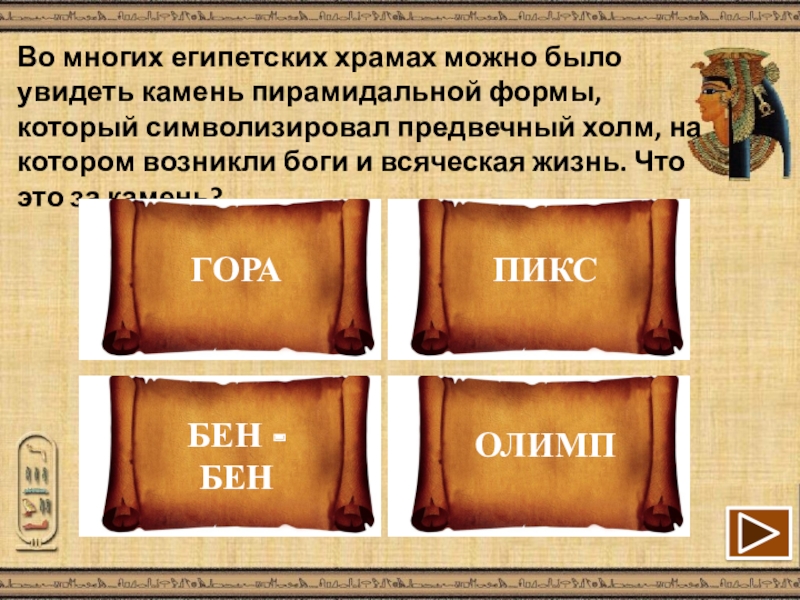 Слайд 3Во многих египетских храмах можно было увидеть камень пирамидальной формы, который
