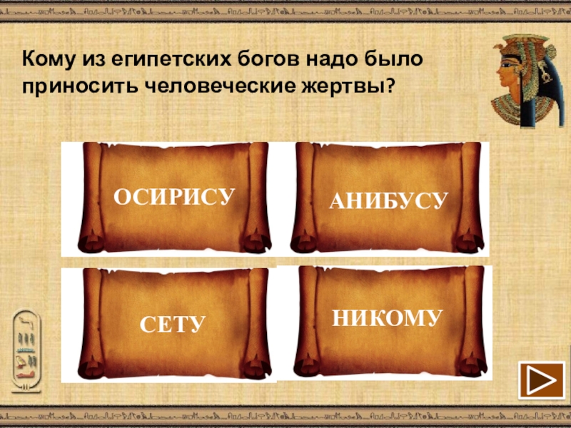 Слайд 12Кому из египетских богов надо было приносить человеческие жертвы?