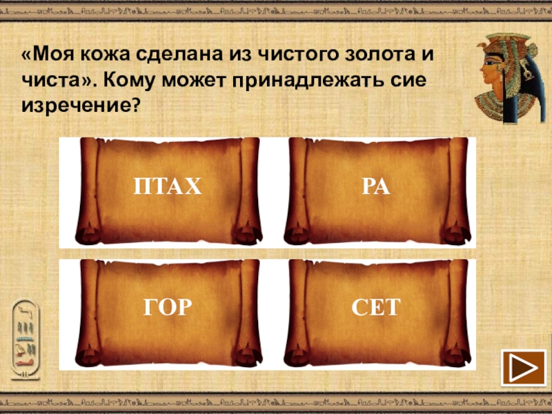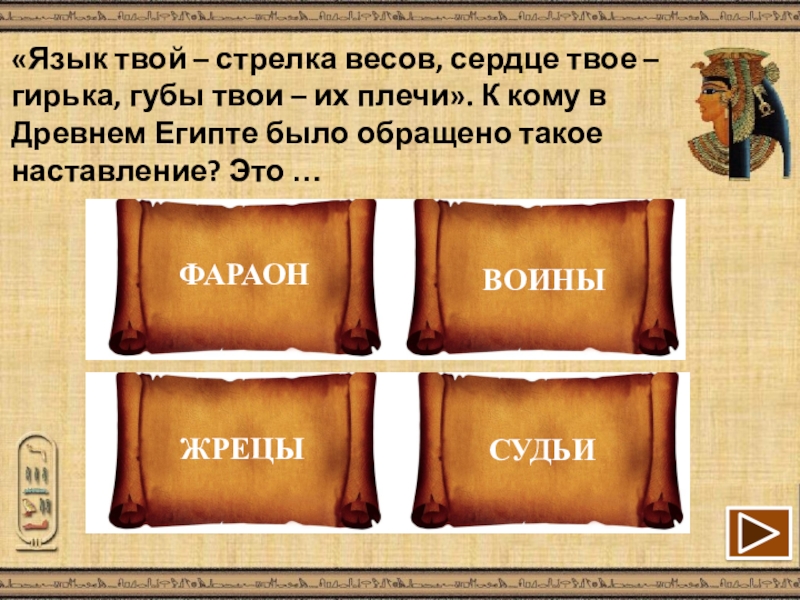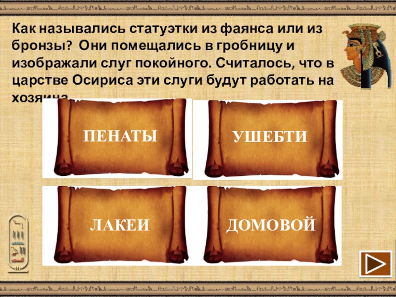 Презентация, доклад Викторина Из жизни древних египтян