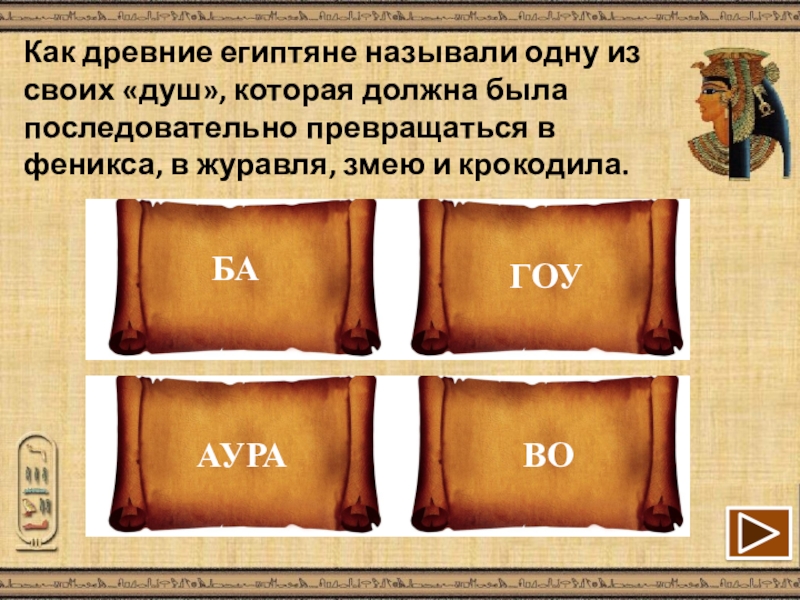 Слайд 10Как древние египтяне называли одну из своих «душ», которая должна была