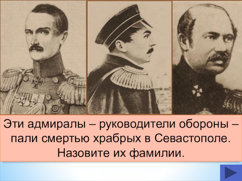 Эти адмиралы – руководители обороны – пали смертью храбрых в Севастополе. Назовите их фамилии.