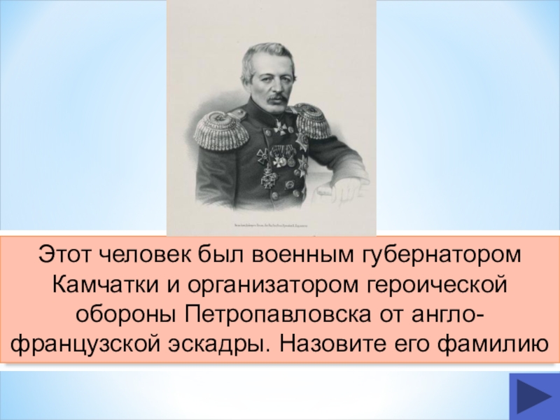 Слайд 27Этот человек был военным губернатором Камчатки и организатором героической обороны Петропавловска
