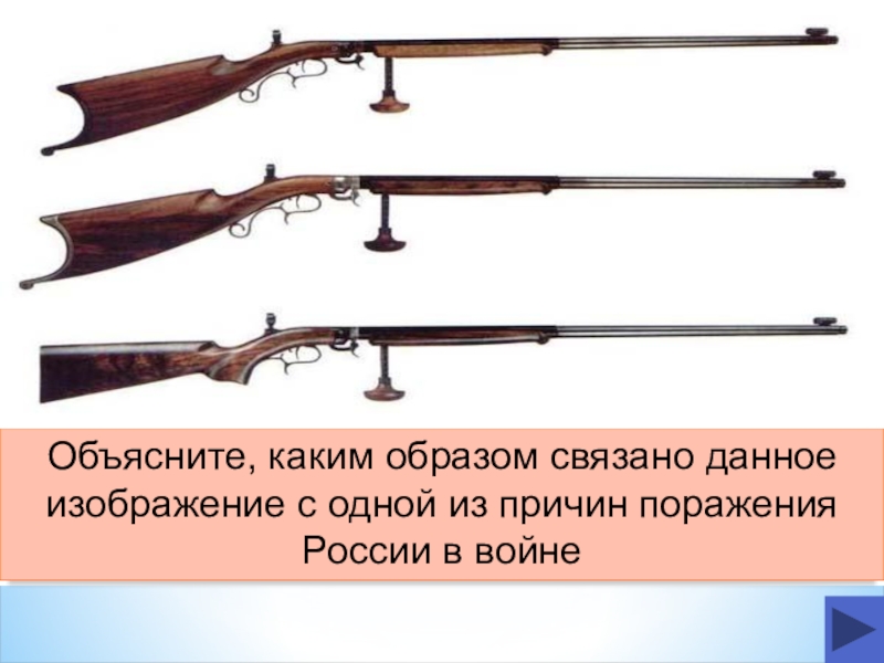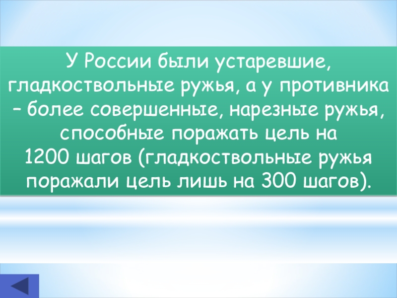 Слайд 8У России были устаревшие, гладкоствольные ружья, а у противника – более