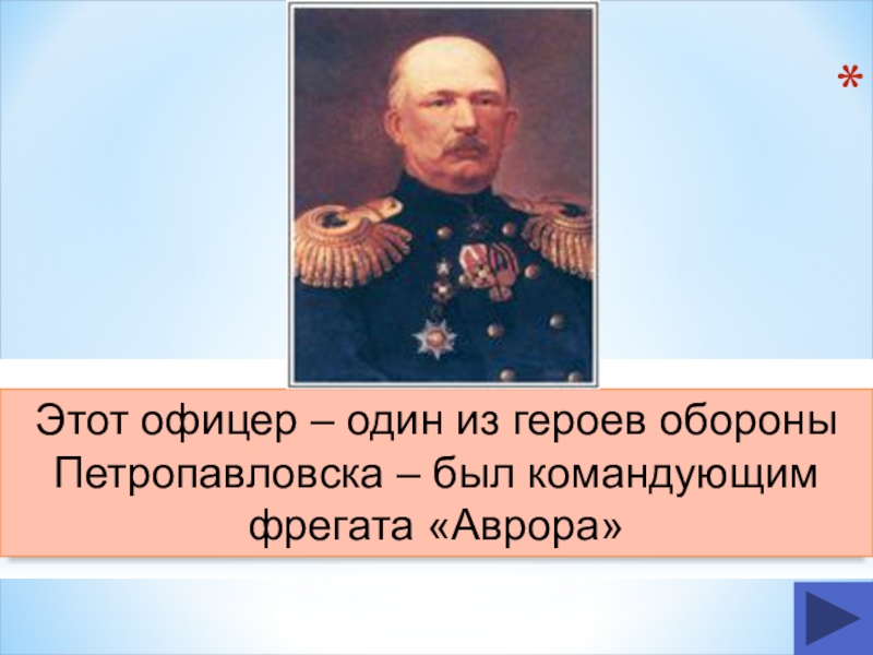 Слайд 31Этот офицер – один из героев обороны Петропавловска – был командующим