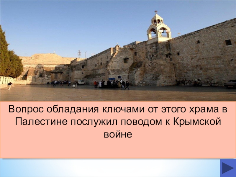 Слайд 5Вопрос обладания ключами от этого храма в Палестине послужил поводом к