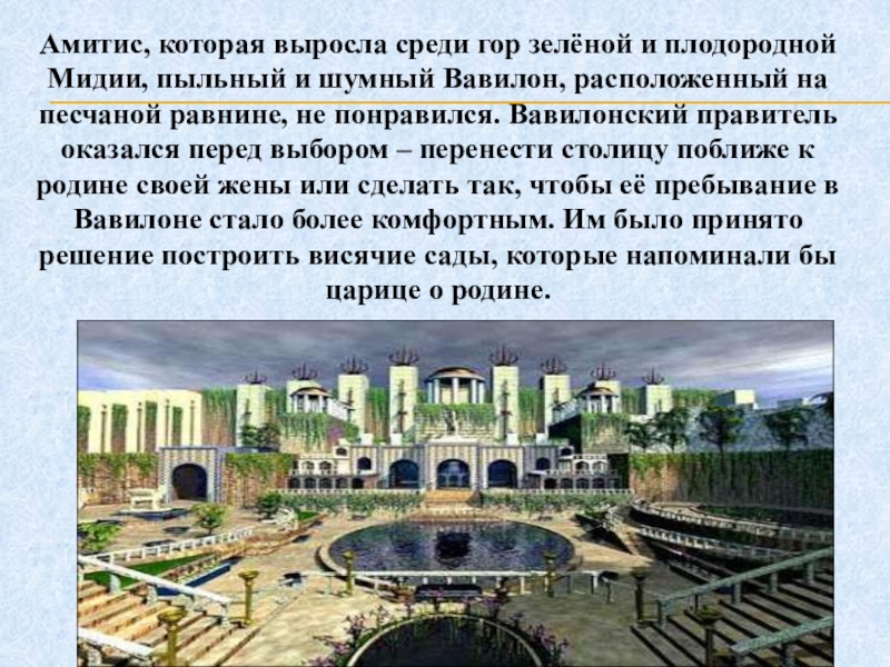 Слайд 3Амитис, которая выросла среди гор зелёной и плодородной Мидии, пыльный и