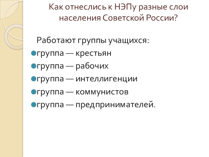 Слайд 28Как отнеслись к НЭПу разные слои населения Советской России?