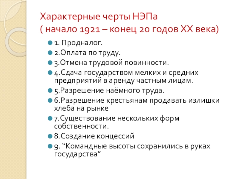 Слайд 19Характерные черты НЭПа