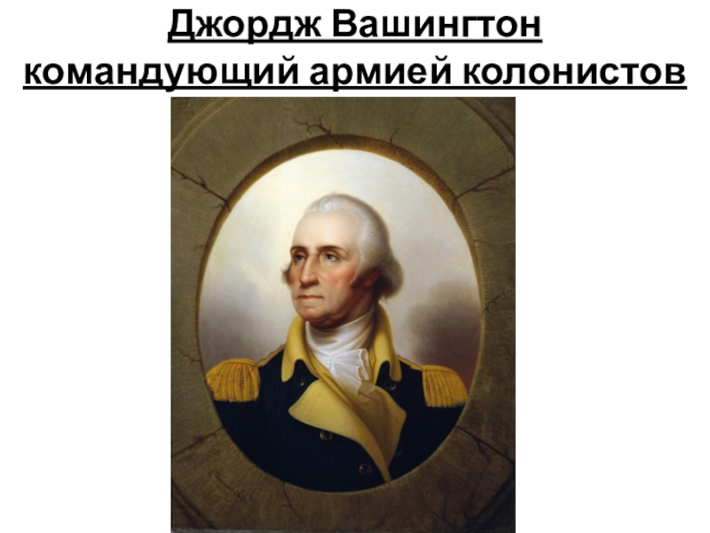 Слайд 19Джордж Вашингтон командующий армией колонистов