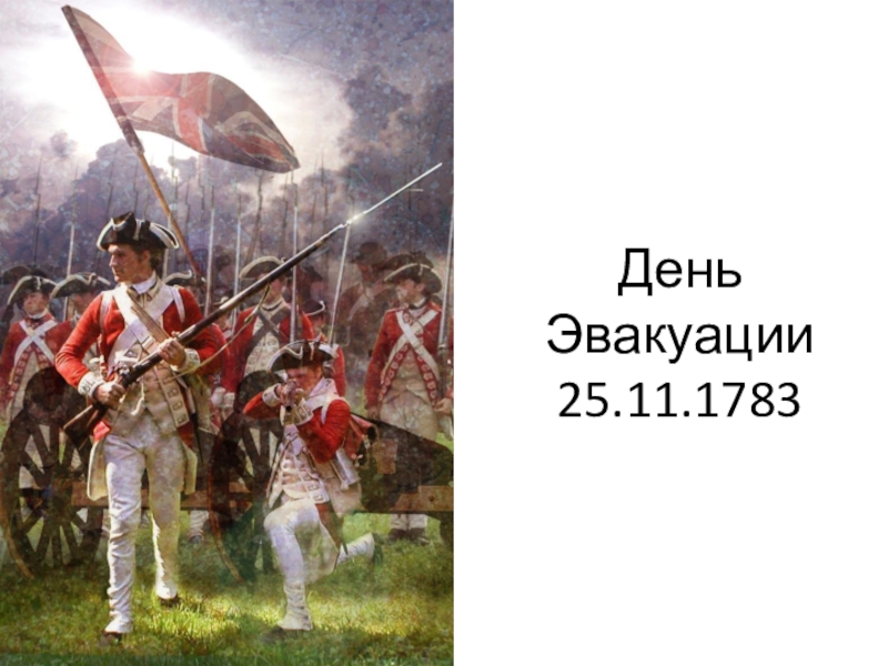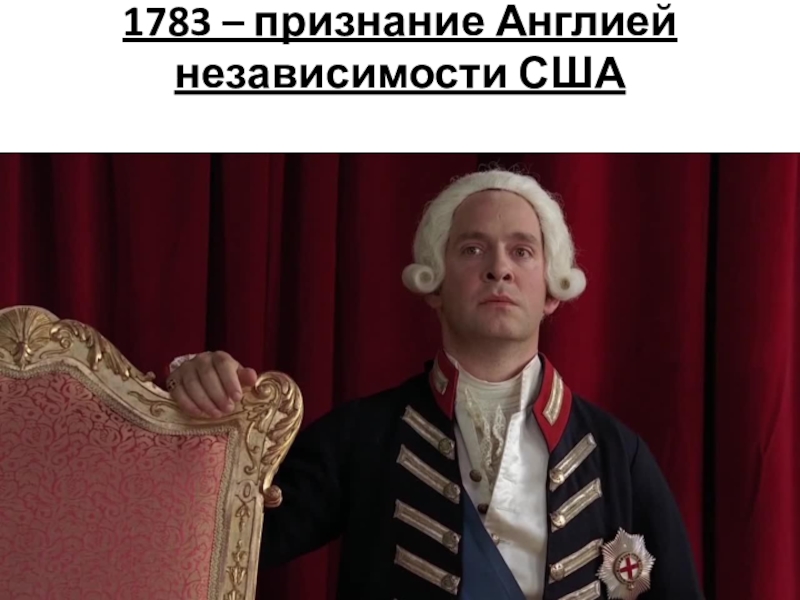 19.04.1775 - начало революции (войны за независимость)4.07.1776 – Декларация об отделении от Англии (Декларация независимости США) 03.09.1783