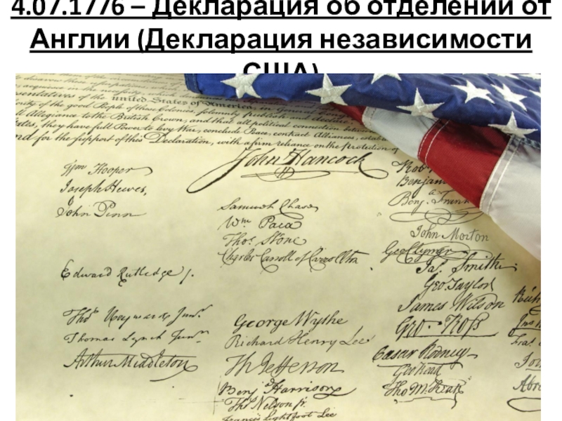 Слайд 214.07.1776 – Декларация об отделении от Англии (Декларация независимости США)