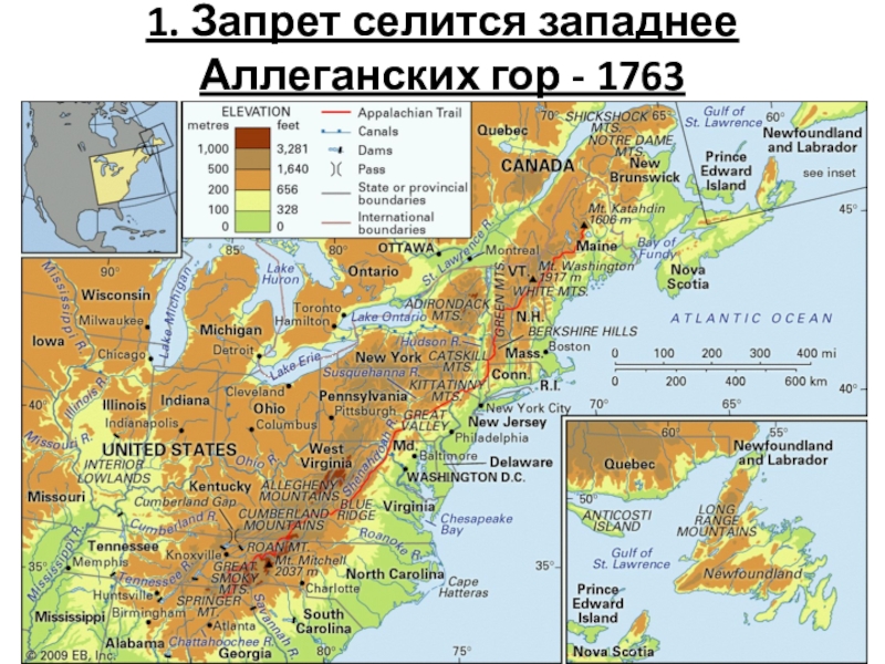 Слайд 131. Запрет селится западнее Аллеганских гор - 1763
