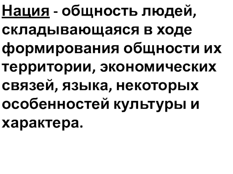 Нация - общность людей, складывающаяся в ходе формирования общности их территории, экономических связей, языка, некоторых особенностей культуры