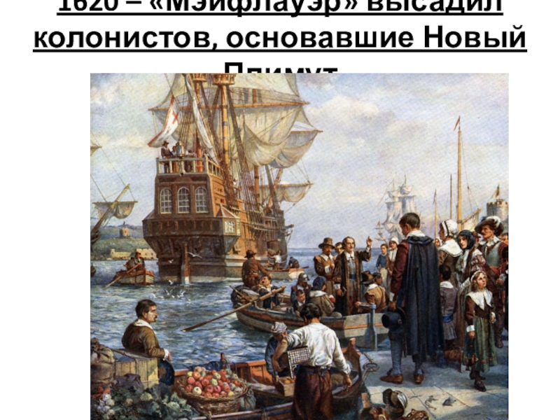 Слайд 31620 – «Мэйфлауэр» высадил колонистов, основавшие Новый Плимут