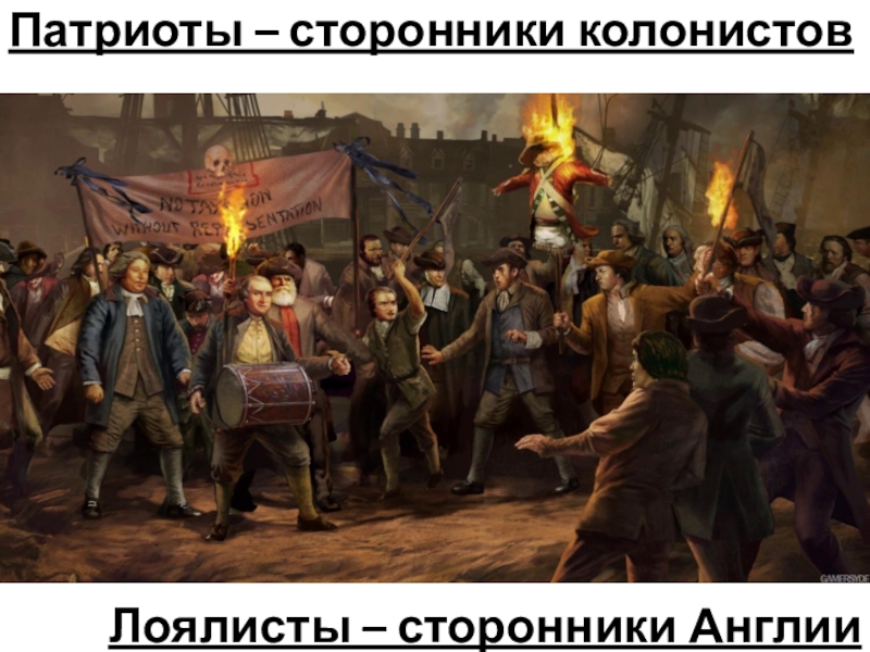 Патриоты – сторонники колонистовЛоялисты – сторонники Англии