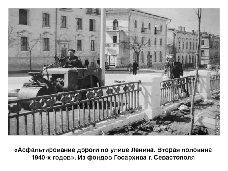 Слайд 14«Асфальтирование дороги по улице Ленина. Вторая половина 1940-х годов». Из фондов