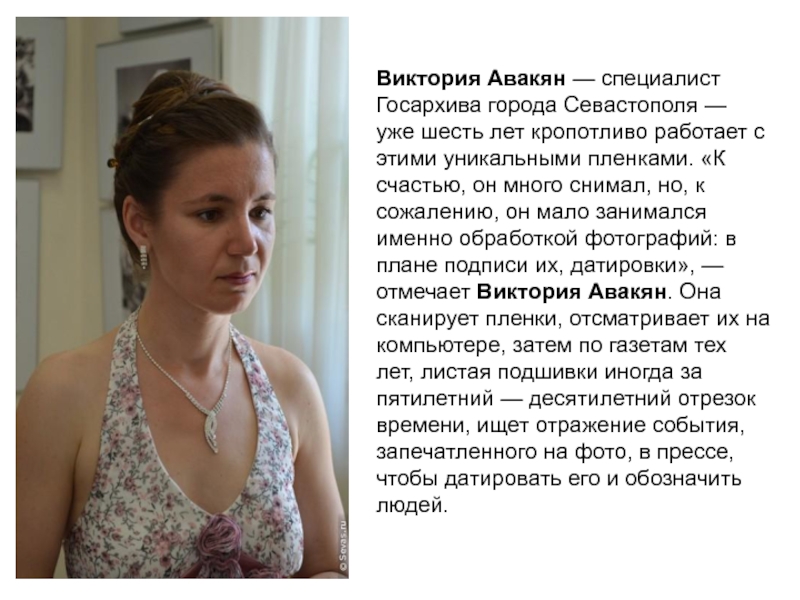 Слайд 25Виктория Авакян — специалист Госархива города Севастополя — уже шесть лет