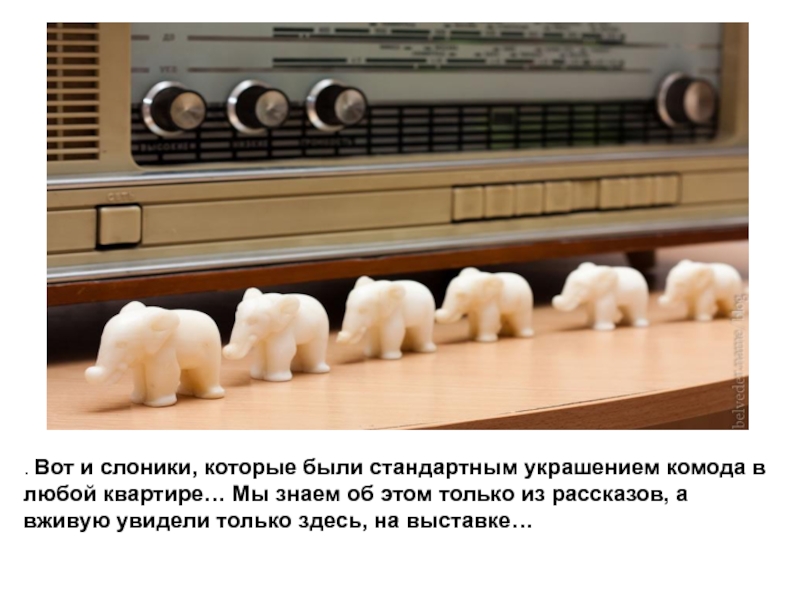 Слайд 7. Вот и слоники, которые были стандартным украшением комода в любой