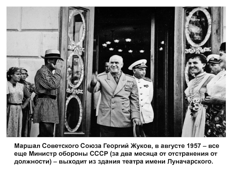 Слайд 13Маршал Советского Союза Георгий Жуков, в августе 1957 – все еще