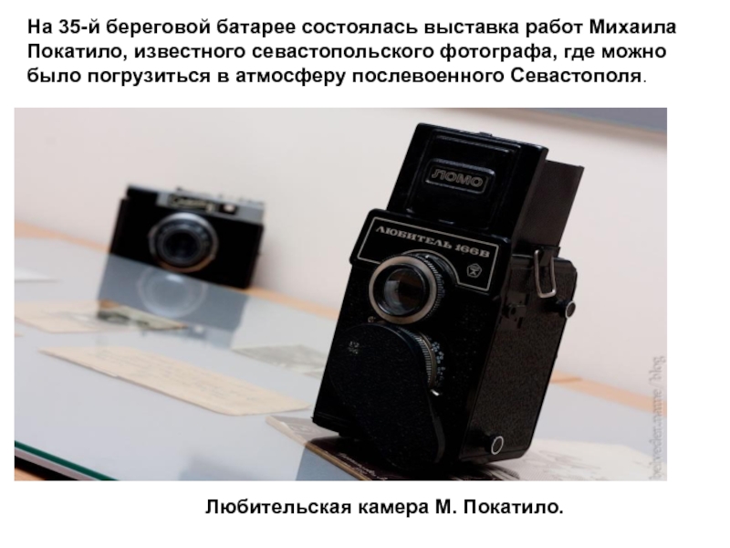 Слайд 5На 35-й береговой батарее состоялась выставка работ Михаила Покатило, известного севастопольского фотографа,