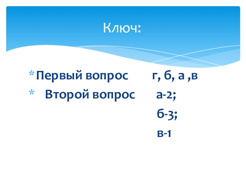 Первый вопрос    г, б, а ,в	  Второй вопрос    а-2;