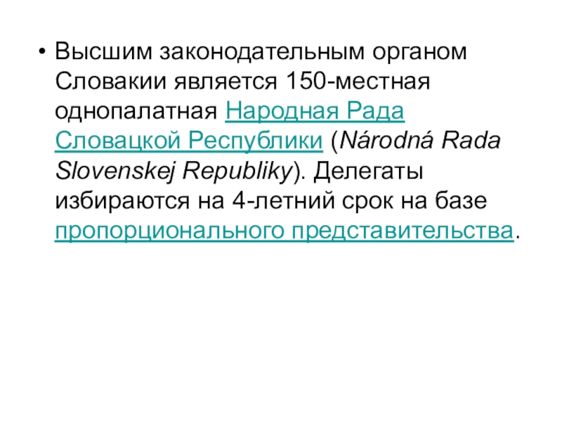 Слайд 3Высшим законодательным органом Словакии является 150-местная однопалатная Народная Рада Словацкой Республики