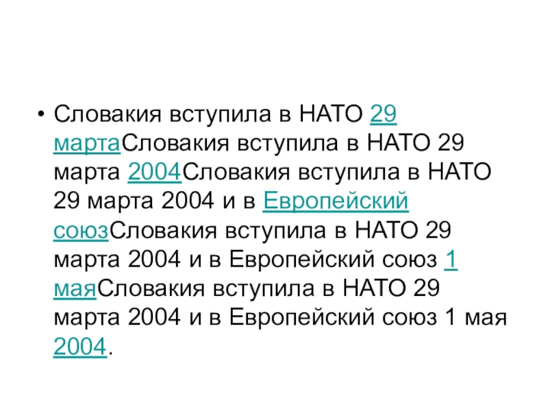 Словакия вступила в НАТО 29 мартаСловакия вступила в НАТО 29 марта 2004Словакия вступила в НАТО 29 марта