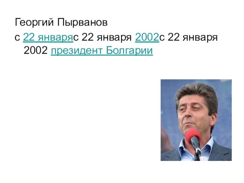 Георгий Пырванов с 22 январяс 22 января 2002с 22 января 2002 президент Болгарии