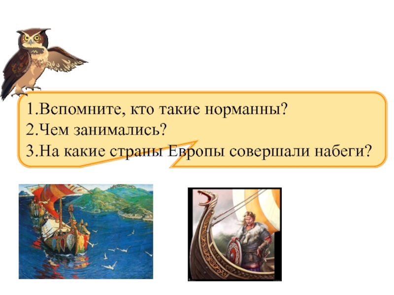 1. Норманнские сказания упоминают отважного конунга Рюрика Рыжего, немецкие хроники – конунга Рёрика Датского, переселившегося на восток в середине IX века.