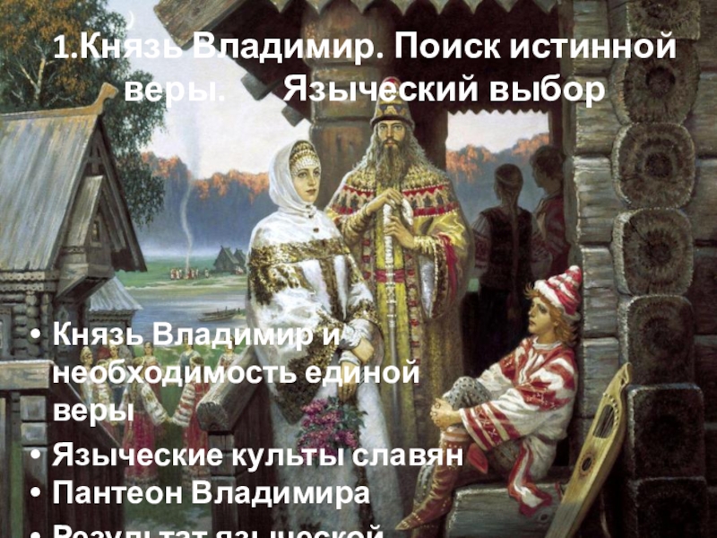 1.Князь Владимир. Поиск истинной веры.    Языческий выбор   Князь Владимир и